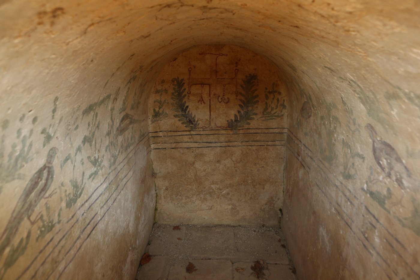 The plan with four towers remained until the time of Justinian, when its fortified character changed due to the enlargement of the warehouses and workshops for the production of wine and olive oil. It was destroyed by an earthquake in the middle of the 6th century, after which the church was rebuilt on the central slope, the previous building area being converted into a cemetery.